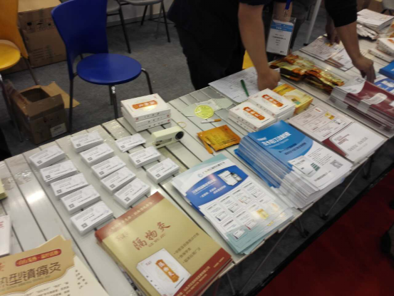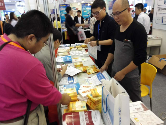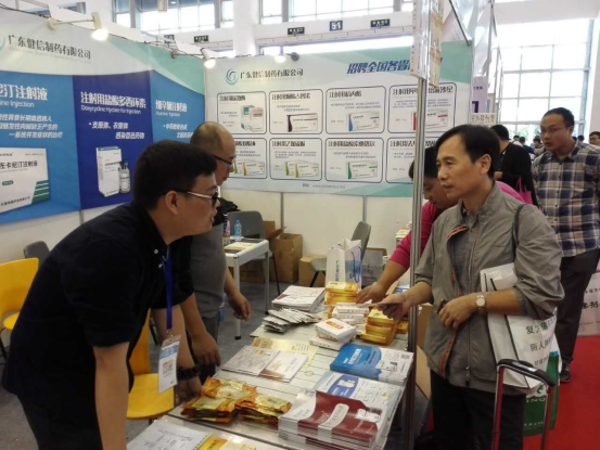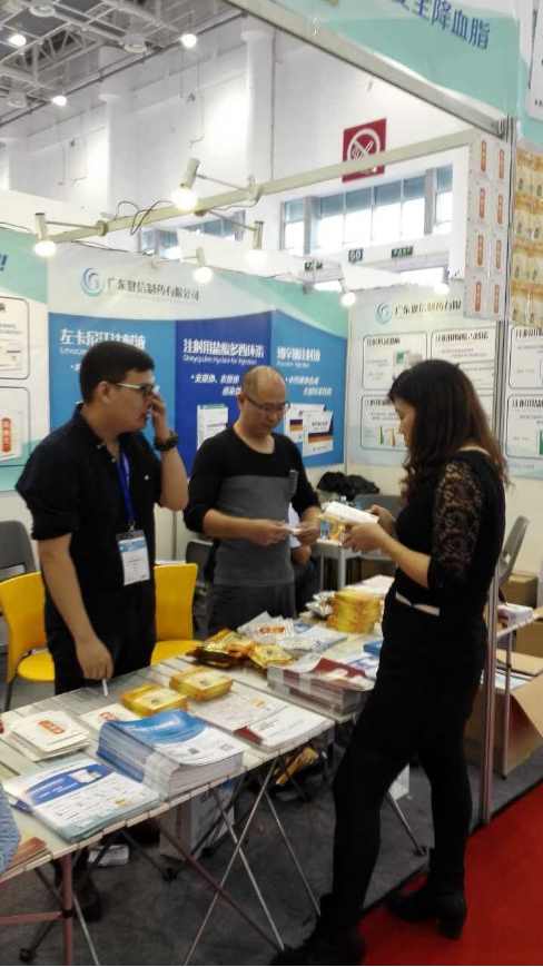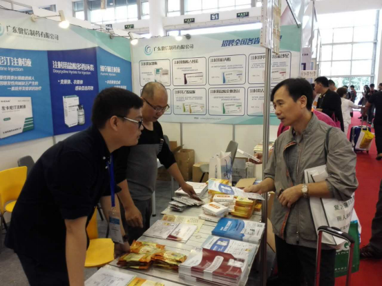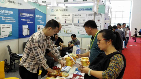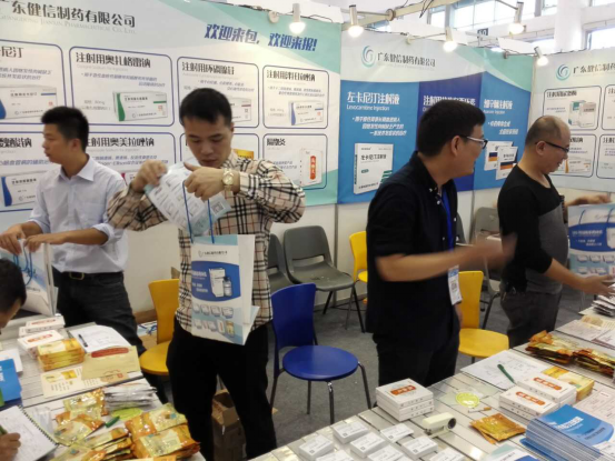 健信制药展示区现场,客人络绎不绝上前咨询。