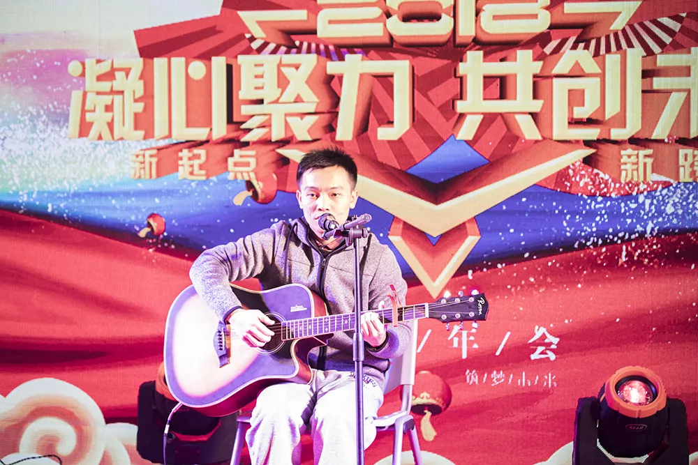 年会上节目精彩纷呈、让人目不暇接。锣鼓献瑞,互动帮嘉宾四句贺喜妙笔生花,令人捧腹的小品,动人的潮语歌曲,优美的吉他弹唱,美妙的女声独唱,悦耳的男声独唱,清澈嘹亮的大合唱,一个个节目引人入胜,扣人心弦,精彩绝妙。节目中间穿插了抽奖环节,随着三等奖、二等奖、一等奖、特等奖的抽出,晚会高潮迭起,气氛越来越热烈。歌声、掌声、笑声、欢呼声回荡在整个会场,健信大家庭欢乐和谐!